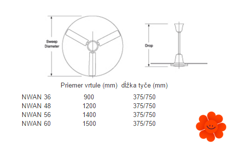 Ventilátor NWAN 48 je dodáván s vrtulí se třemi ocelovými listy s průměry 1200 mm.