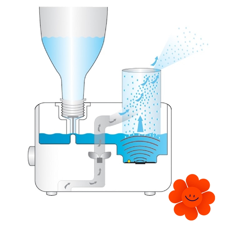 Model LB12 pracuje na principu mikro-jemné ultrazvukové atomizace, kdy rychle vibrující membrána přenáší kmitání na vodu a ta se mění na studenou vodní páru, která je distribuována do místnosti. Výhodou tohoto principu je nízká spotřeba energie při masivním výkonu.