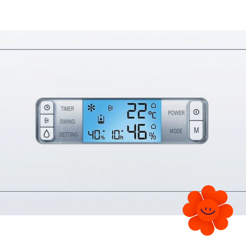 Kontrolky umístěné na horní části skříňky signalizují: provoz jednotky, naplnění nádoby kondenzátu, chod protimrazové ochrany, chod doběhu a nastavený stupeň otáček ventilátoru. Kromě toho je na skříni zařízení umístěn i displej, který zobrazuje vnitřní hodnotu relativní vlhkosti v místnosti.