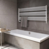 Rovný plochý radiátor Stick Level značky INSTAL-PROJEKT skvěle zapadne do minimalistických koupelnových prostor. Nadčasový žebříkový tvar orientovaný na šířku je elegantní variantou klasického koupelnového radiátoru. Dokonale se hodí zejména do prostoru nad vanou.