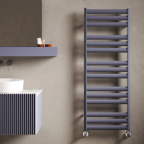 Horizontální topidlo Coron Double je vyrobeno z hladkých ocelových trubek s průměrem 60 mm, které si můžete barevně přizpůsobit barvám vaší koupelny.