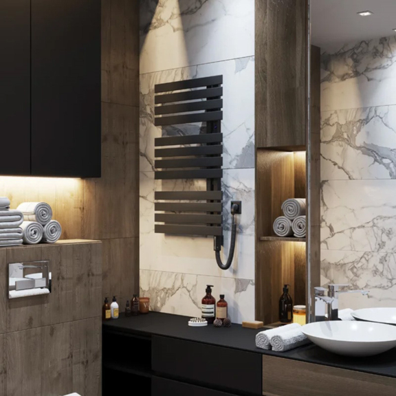 Designový radiátor ISAN Koro představuje netradiční koupelnové vytápění. Díky atypickému žebříkovému tvaru ho využijete na praktické ukládání ručníků. Potěší vás i jeho mimořádně vysoký výkon.