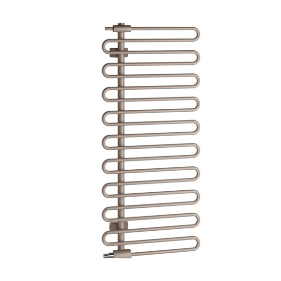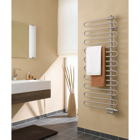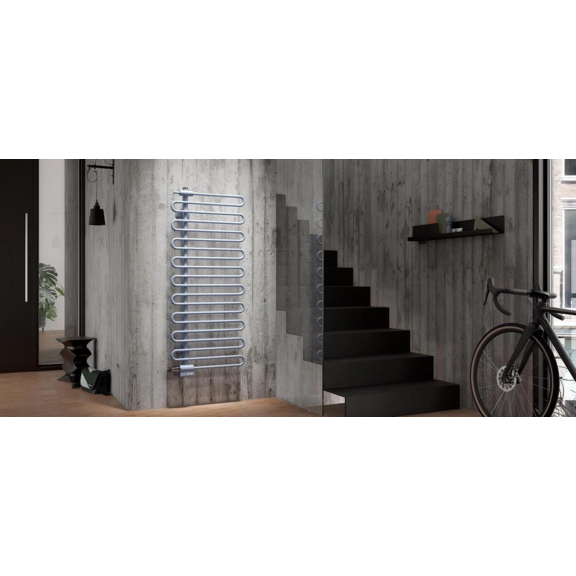 Moderní a lehký design s dynamickou asymetrií je nyní ještě harmoničtější díky přesným a čistým liniím příčných trubek. Jedinečný styl doplňuje integrovaná ventilová armatura, která umožňuje efektivní a energeticky úsporné ovládání. Všechny přípojky jsou elegantně skryty za krytem a termostatická hlavice je plynule zapracována do designu.