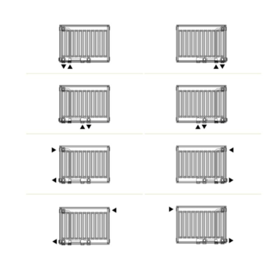 Typ připojení: V Plus – radiátor je vybaven zároveň středovým a pravým, nebo středovým a levým připojením s 50mm roztečí, které umožňuje estetičtější instalaci, lepší regulaci teploty a je ideální pro moderní topné soustavy včetně nízkoteplotních systémů.