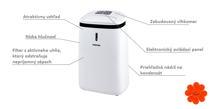 Charakteristika domácího odvlhčovače vzduchu Master DH 720: