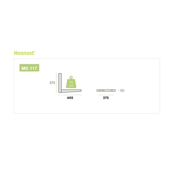 Rozměry konzoly: 800 x 450 mm, Délka ramene: 520 mm, nosnost 140 kg, úhel střechy 9° - 45°.