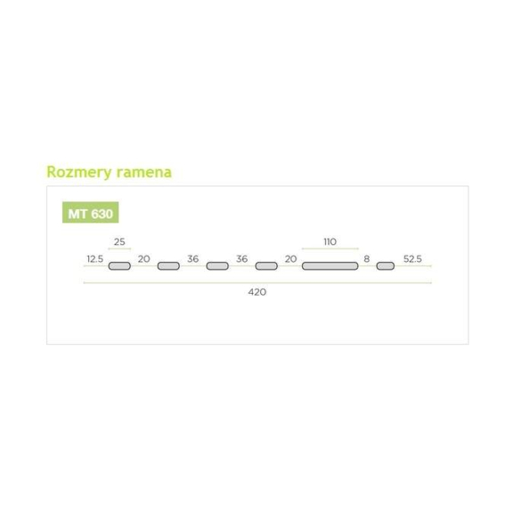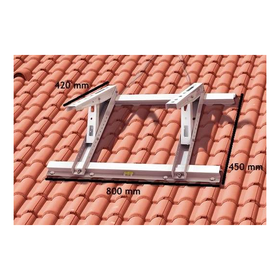 Rozměry konzoly: 800 x 450 mm, Délka ramene: 520 mm, nosnost 140 kg, úhel střechy 9° - 45°.