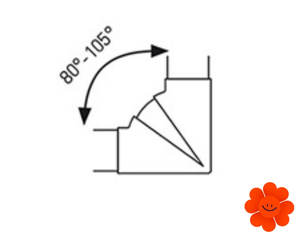Nastavitelný vnitřní roh 0820IR slouží k propojení dvou plastových potrubí pro uložení rozvodů klimatizace v nestandardních úhlech v rozsahu 80° až 105°.