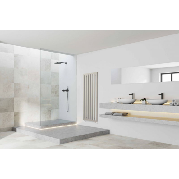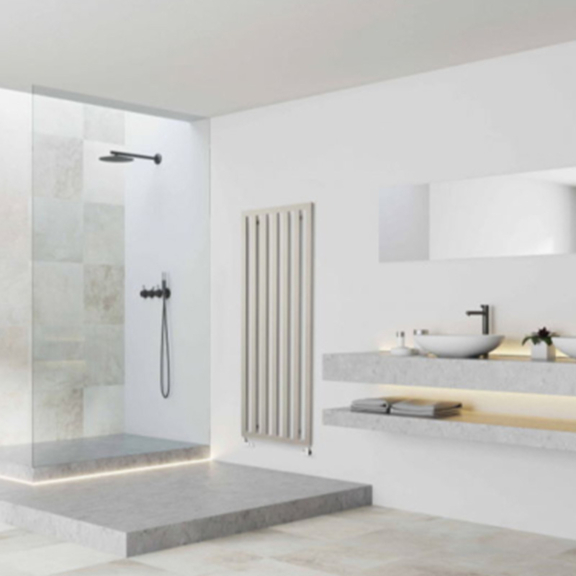 Darius je radiátor z dílny výrobce P.M.H., který nabízí jednoduchý, obdélníkový design s hranatými profily trubek a možností dokoupení madla pro zavěšení ručníků.