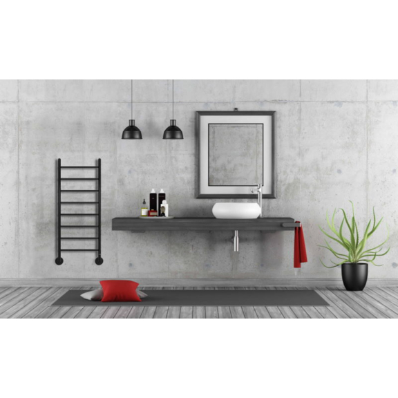 Efektivní elektrický sušák ručníků P.M.H. Lasse s nízkou spotřebou energie je dodáván v provedení leštěná nerez nebo černá matná.