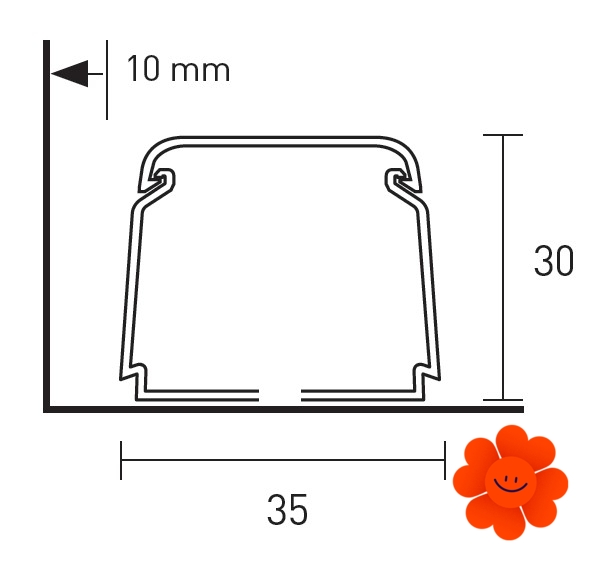 Plastový žlab 0412BC s rozměry 35x30x2000 mm lze použít ke skrytí hadice na odvod kondenzátu. Do žlabů se vejdou hadice o průměru 16 - 20 mm.