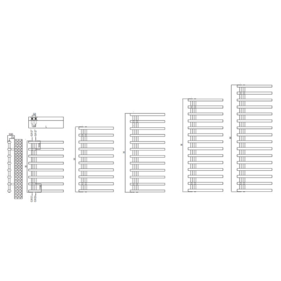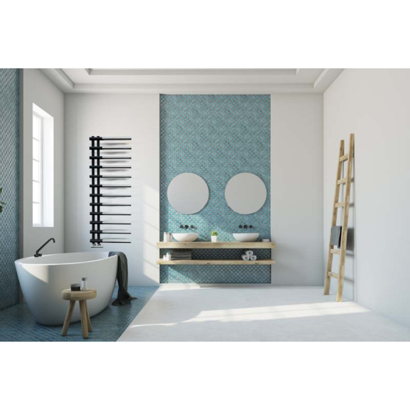 Horizontální trubky jsou kolmo uspořádány na dva vertikální kolektory a rovnoměrně rozmístěny tak, aby umožnily pohodlné zavěšení více ručníků najednou.