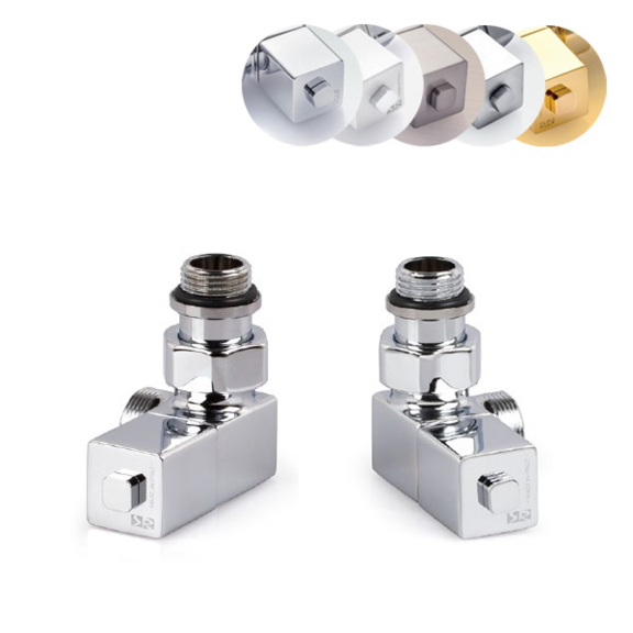 Úhlová manuální designová sada - pár 0608 + 0609 (přívodní ventil, odvodní ventil a 2x šroubení).