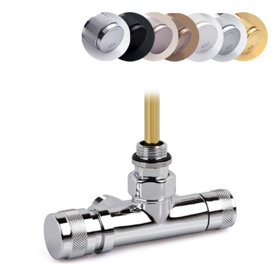 Přímá termostatická designová sada - pár 0370 + 0344 (přívodní ventil, odvodní ventil a 2x šroubení).