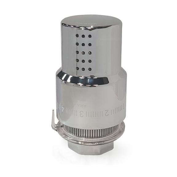 Aria je designová plastová termostatická hlavice, která je výborným, funkčním doplňkem ke všem designovým ventilům. Má zabudovaný i senzor teploty kapaliny.