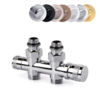 Přímý středový manuální designový ventil s možností předělání na termostatický - sada obsahuje středový ventil (0682) a 2x šroubení.