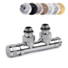 Levý středový manuální designový ventil s možností předělání na termostatický - sada obsahuje středový ventil (0683) a 2x šroubení.