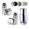 Pravá úhlová termostatická designová sada - pár 0641 + 0639 + N093 (přívodní ventil, odvodní ventil, hlavice Domus a 2x šroubení).