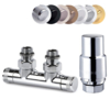 Rohový středový termostatický designový ventil s dvojitou zpátečkou - sada obsahuje středový ventil (0699), termostatickou hlavici Domus a 2x šroubení.