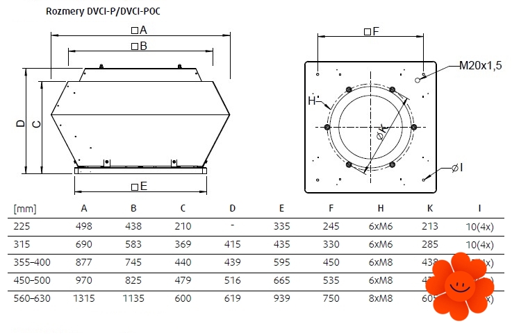 Typy střešních ventilátorů Systemair DVCI: