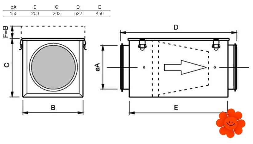 Filtrační kazeta FFR 150 je zhotovena z pozinkované oceli. Kruhové napojení má gumové těsnění a zavírá se pomocí spon. Filtry se dají vyměnit. Filtrační kazeta disponuje připojovacími místy pro měření tlakové ztráty.