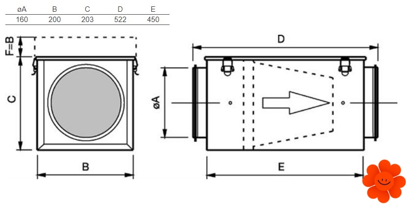 Filtrační kazeta FFR 160 je zhotovena z pozinkované oceli. Kruhové napojení má gumové těsnění a zavírá se pomocí spon. Filtry se dají vyměnit. Filtrační kazeta disponuje připojovacími místy pro měření tlakové ztráty.