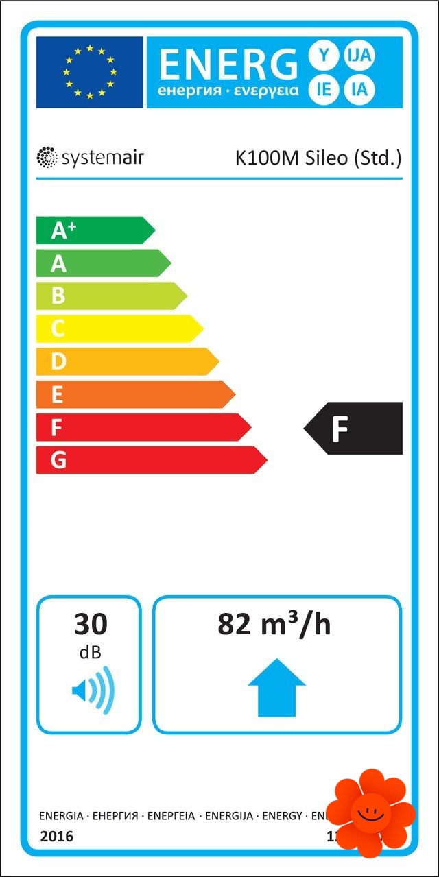 Kruhový ventilátor Systemair K 100 M sileo splňuje minimální požadavek na energetickou účinnost podle směrnice ERP.