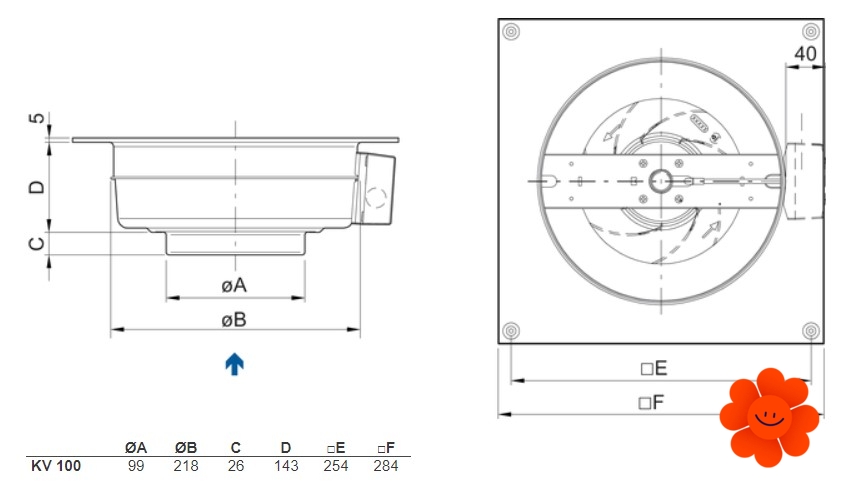 Systemair KV 100 M sileo kruhový ventilátor je určený pro montáž na stěnu nebo strop s možností připojení kruhového potrubí pro odvádění vzduchu. Motor má vnější rotor a oběžná kola s lopatkami zahnutými dozadu. Motor ventilátoru má pro svou ochranu vestavěné tepelné kontakty s manuálním resetem.
