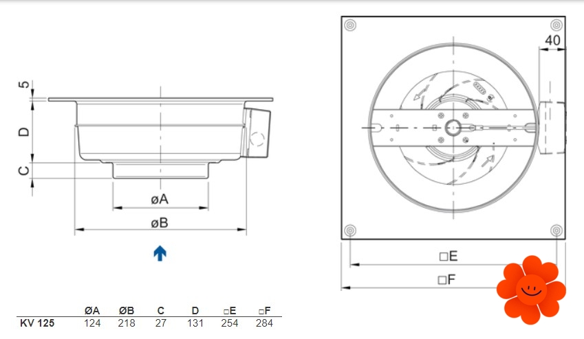 Systemair KV 125 M sileo kruhový ventilátor je určený pro montáž na stěnu nebo strop s možností připojení kruhového potrubí pro odvádění vzduchu. Motor má vnější rotor a oběžná kola s lopatkami zahnutými dozadu. Motor ventilátoru má pro svou ochranu vestavěné tepelné kontakty s manuálním resetem.