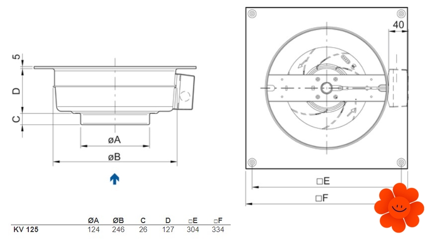 Systemair KV 125 XL sileo kruhový ventilátor je určený pro montáž na stěnu nebo strop s možností připojení kruhového potrubí pro odvádění vzduchu. Motor má vnější rotor a oběžná kola s lopatkami zahnutými dozadu. Motor ventilátoru má pro svou ochranu vestavěné tepelné kontakty s manuálním resetem.