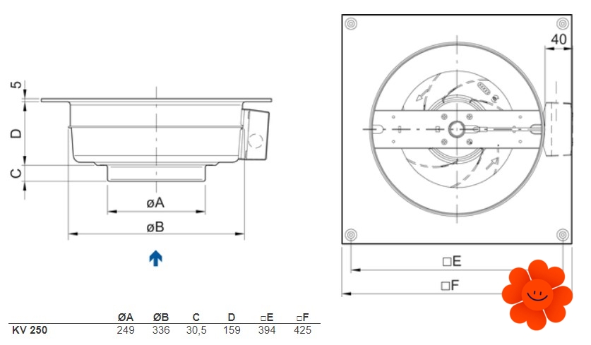 Systemair KV 250 L sileo kruhový ventilátor je určený pro montáž na stěnu nebo strop s možností připojení kruhového potrubí pro odvádění vzduchu. Motor má vnější rotor a oběžná kola s lopatkami zahnutými dozadu. Motor ventilátoru má pro svou ochranu vestavěné tepelné kontakty s manuálním resetem.
