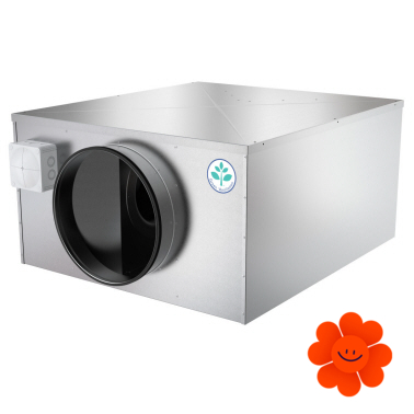 Plášť kruhového ventilátoru Systemair KV DUO 250 EC je zhotoven z aluzinkového plechu, díky čemuž jsou velmi dobře akusticky izolované. V plášti motoru je zabudovaná elektronika.