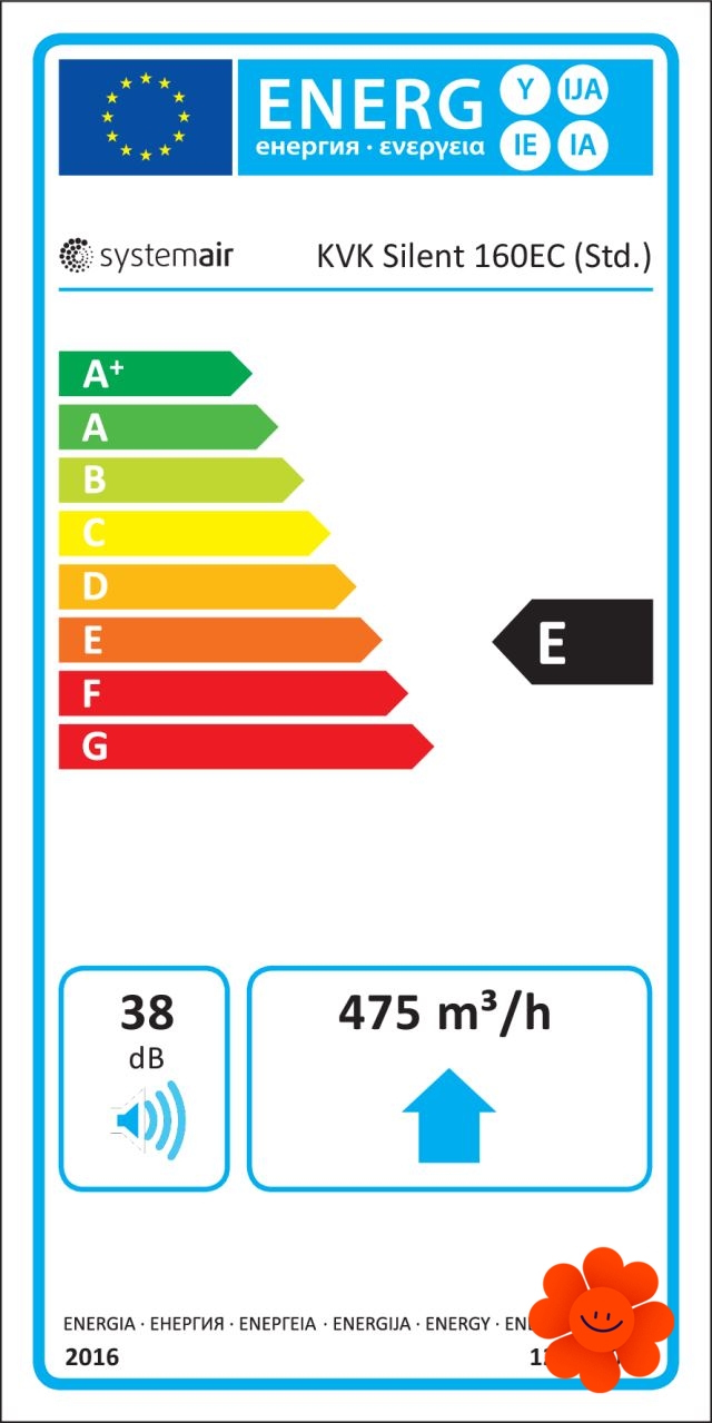 Kruhový ventilátor Systemair KVK Silent 160EC splňuje minimální požadavek na energetickou účinnost podle směrnice ERP.