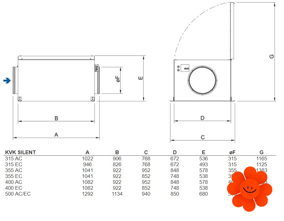 Ventilátor je vybaven speciálně vyvinutými optimalizovanými oběžnými koly a náběhovými hranami, díky kterým dosahuje nejlepší hodnoty SFP ve své třídě a zároveň nízkou hladinu hluku. (Čím nižší je hodnota SFP, tím méně energie je potřebné k přemístění 1m3 vzduchu.)