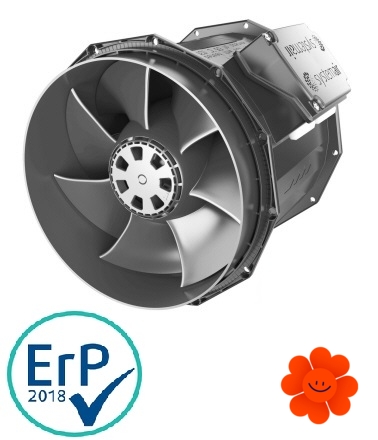 Ventilátor je vybaven speciálně vyvinutými optimalizovanými oběžnými koly a náběhovými hranami, díky kterým dosahuje nejlepší hodnoty SFP ve své třídě a zároveň nízkou hladinu hluku. (Čím nižší je hodnota SFP, tím méně energie je potřebné k přemístění 1m3 vzduchu.)
