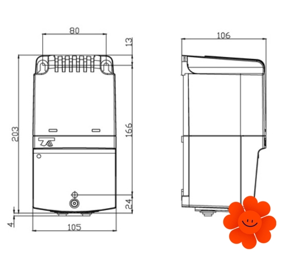 Materiál použitý na obal - plast. Napájecí napětí 230V, 50/60Hz.