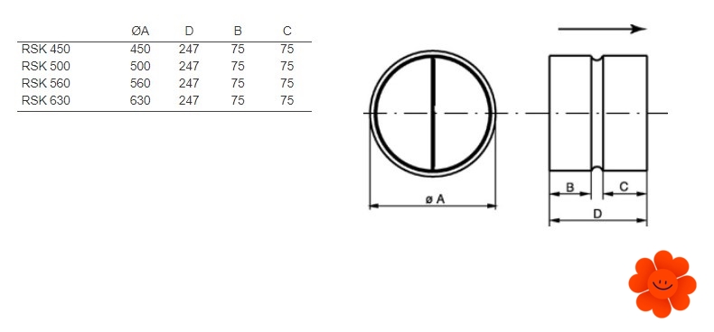 Střešní ventilátor DVC 560-P má oběžné kolo vyrobené z polypropylenu PP s dozadu zahnutými lopatkami.