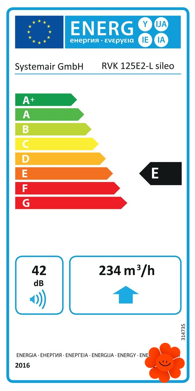 Kruhový ventilátor Systemair RVK 125E2-L sileo splňuje minimální požadavek na energetickou účinnost podle směrnice ERP.