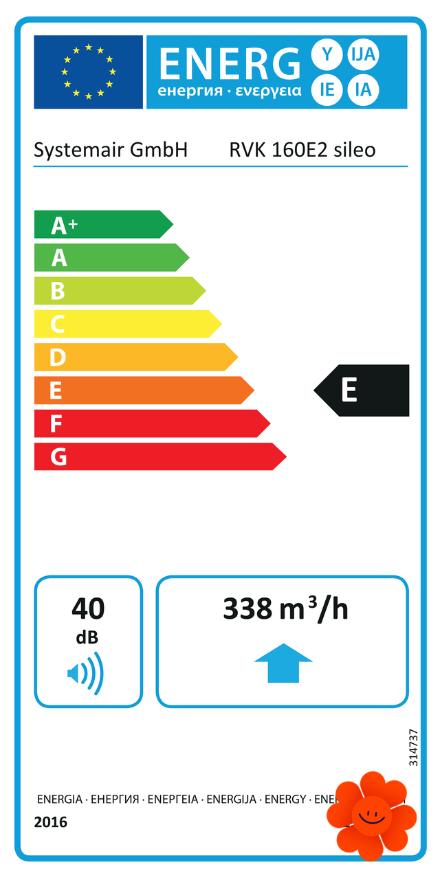 Kruhový ventilátor Systemair RVK 160E2 sileo splňuje minimální požadavek na energetickou účinnost podle směrnice ERP.