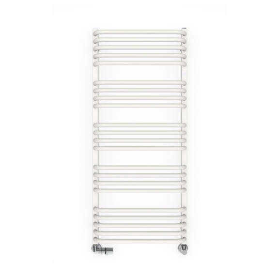 Jednoduchý a elegantní radiátor Alex dokonale zapadne do klasických i moderních interiérů koupelen a kuchyní. Ohnuté trubice žebříku a prostor mezi částmi radiátoru umožňují snadné zavěšení textilií na sušení.