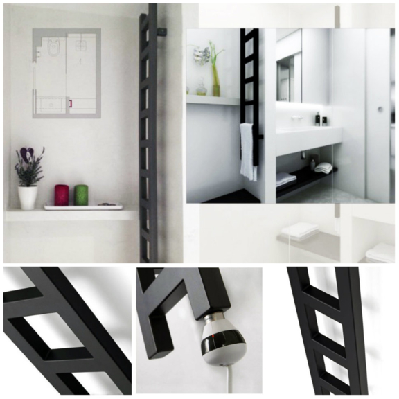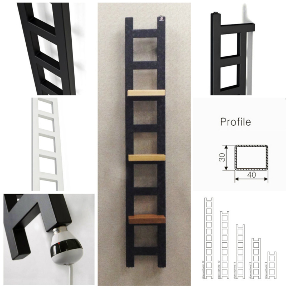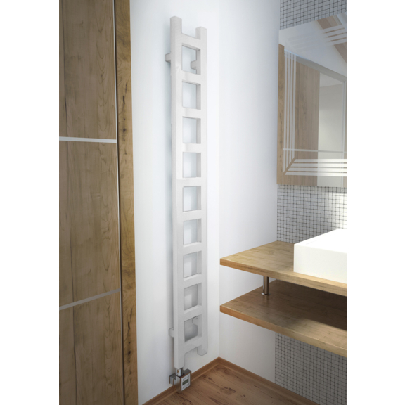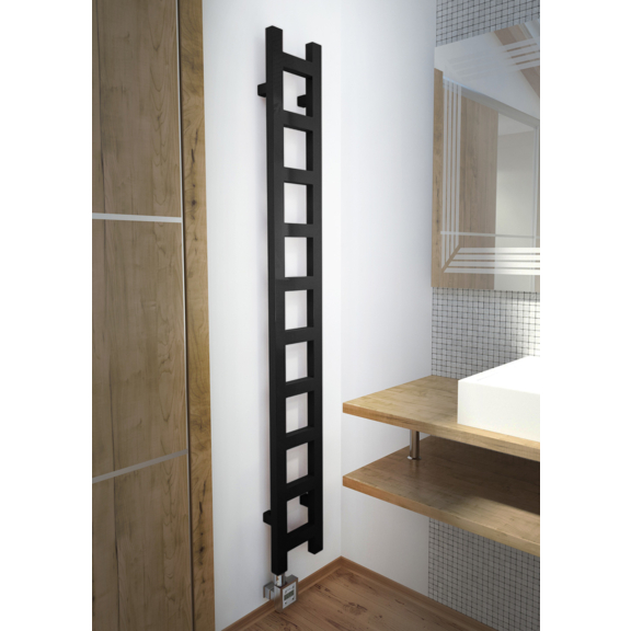 Tato varianta funguje jako závěsný radiátor na stěnu. Funkční a moderní design podporuje konstrukce ve tvaru klasického žebříku, kterou tvoří obdélníkové profily ocelových trubek o rozměrech 30x40 mm.