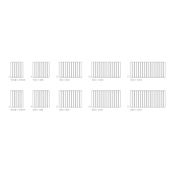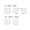Při vertikálním provedení radiátoru s výškou 550–600 mm jsou dostupná připojení LP, VP, VL, zatímco při výškách 1000–1800 mm lze použít pouze připojení LP a ZX.