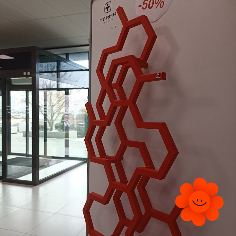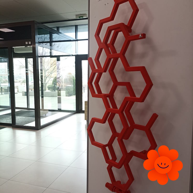 Hexagonové moduly nabízejí značné možnosti z hlediska změny tvaru a velikosti radiátoru, a navíc umožňují pohodlné zavěšení textilií na sušení. Vzhledem k dvouvrstvé charakteristice profilů je radiátor nejen zajímavým obrysem na zdi, ale i vizuálně působí tak, že vchází do prostoru, a tím se stává unikátním designovým objektem v interiéru.