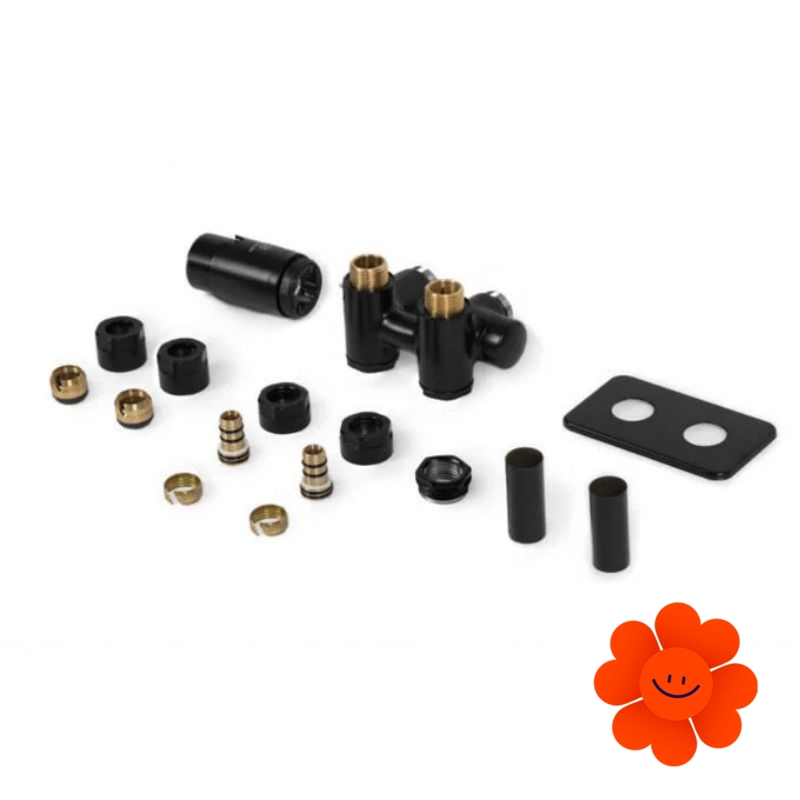 Termostatická sada s T-kusem značky Terma s možností výběru libovolného barevného provedení vyrobeného na míru umožňuje sladit sadu s jakýmkoli radiátorem nebo jinými doplňky.
