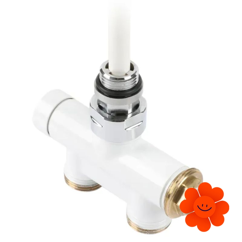 Designová termostatická sada s ponornou trubicí obsahuje: přímý termostatický ventil s ponornou trubicí, termostatickou hlavici SLIM a adaptéry AL-PEX ∅ 16x2 a měď ∅ 15.
