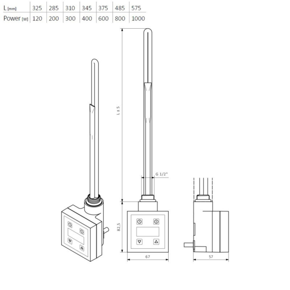 Provozní napětí: 230V/50Hz, I. třída ochrany, rozsah teplot 30-60 °C (s krokem 1 °C), připojovací závit G1/2" vnější (na topné tyči), výkon topné tyče 120-1000 W.