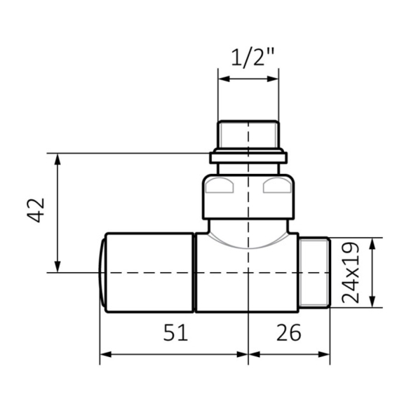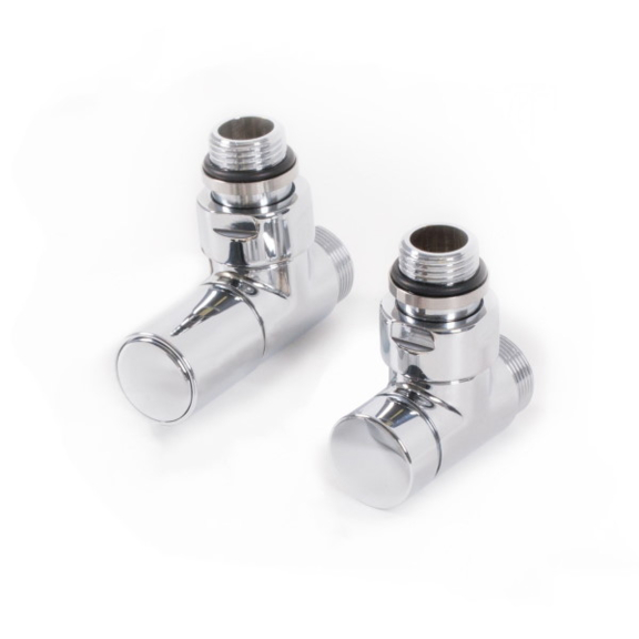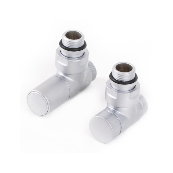 Rohová manuální designová sada obsahuje: regulační ventil, uzavírací ventil, adaptéry AL-PEX ∅ 16x2 a měď ∅ 15.