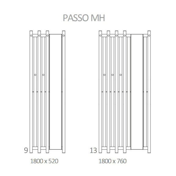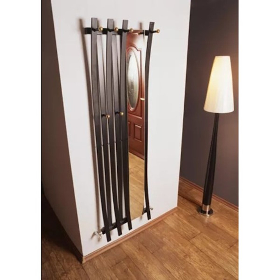 Vertikální radiátor Terma Passo MH je unikátním radiátorem se zrcadlem a s řadami háčků. Jeho design spojuje rovné a zakřivené profily, což dává radiátoru jedinečný vzhled. Díky své různorodosti je vhodný do všech místností, ale nejlépe se osvědčí v chodbě nebo koupelně.