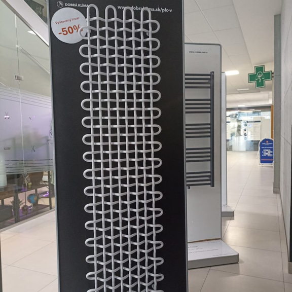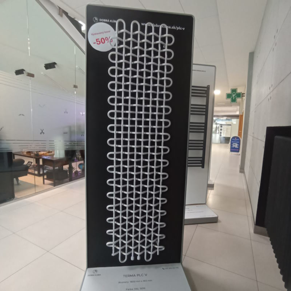 Vítěz ceny Good Design 2014 a ceny Must have v 2015. Dekorační radiátor PLC se svou propletenou strukturou inspiroval tkalcovskými řemeslnými vzory. Díky pokročilé digitální technologii ohýbání profilů bylo možné vytvořit složitou "tkanou" ocelovou konstrukci. Manuální úprava (pájení, broušení) zabraňuje typickým poruchám obrábění. Krásná a funkční dekorace salónů, ideální a vhodný i pro exkluzivní veřejné prostory. Tento model byl vyvinutý v horizontálních (PLC H) a vertikálních (PLC V) verzích. Zde uvádíme vertikální radiátor na výšku PLC V, který je k dispozici ve verzi vody.