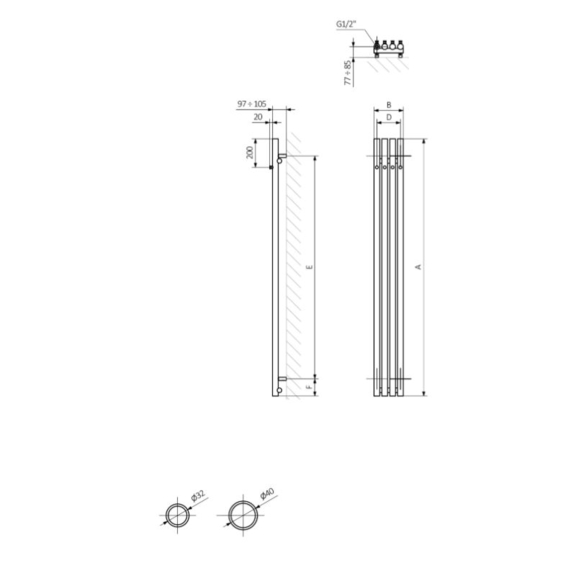 Dostupné verze: elektrické vytápění. Tepelný výkon: 200–1200 W. K dispozici je také model Rolo Hanger s vodním ohřevem.